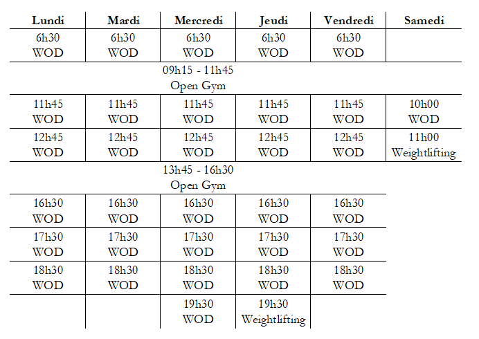 Ces sessions sont obligatoires si vous n'avez jamais fait de CrossFit.